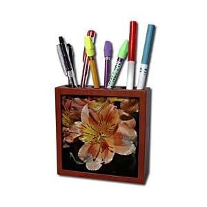 Product Description : Macros Tiger Lily Close up of Tiger Lily Tile Pen Holder is measuring 5w x 5h x 2d. Made from high quality solid mahogany wood with satin finish and one 4.25 commercial grade mirror gloss ceramic tile. Looks great on a desk or counter top with a full color custom imaged tile.