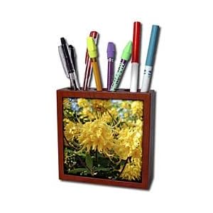 Product Description : Beautiful Azaleas Tile Pen Holder is great on a desk or counter top. Made of high quality solid wood with a satin finish. Image displayed on one inset high gloss 4.25" x 4.25" ceramic tile. Overall size is 5" x 5" x 1 2/3" with 3- 1 1/3" top holes.